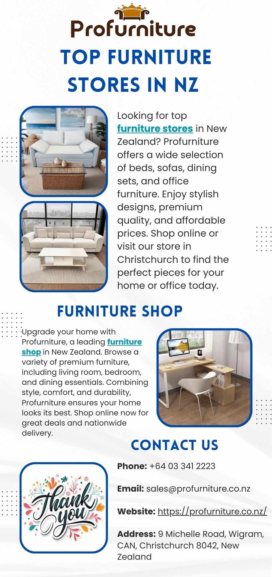 Upgrade your home with Profurniture, a trusted furniture store in New Zealand. Explore a wide range of living room, bedroom, dining, and office furniture crafted for elegance and durability. Shop online or visit our store in Christchurch for furniture that combines style, comfort, and value. Contact us +64 03 341 2223